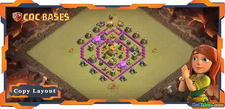 Discover the ultimate TH6 war base layout for Clash of Clans! Featuring a hybrid design, anti 2-star strategy, and essential defensive buildings.