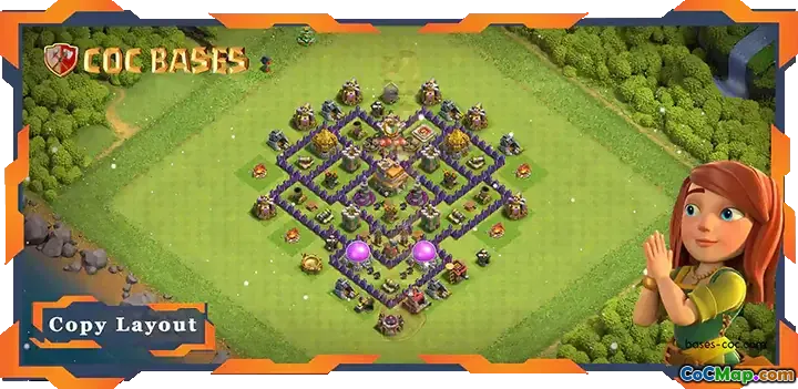 Discover the ultimate TH7 base layout in Clash of Clans! Achieve an anti 2 stars design with a central Town Hall, air defense, and wizard towers.