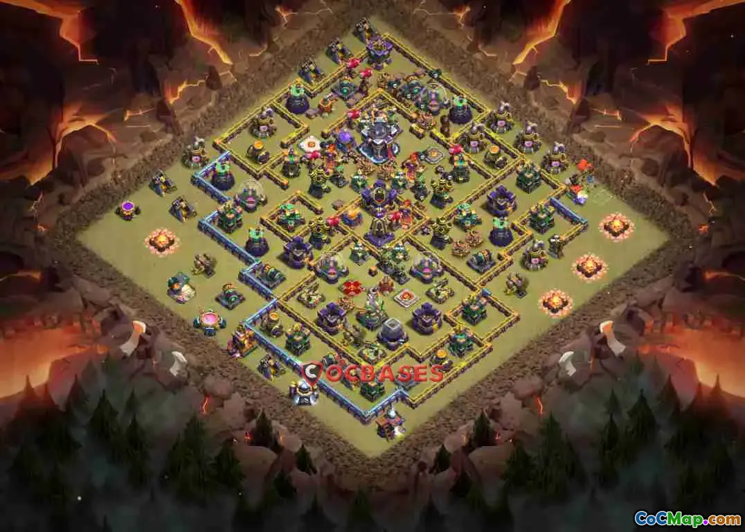 This war base showcases anti-air capabilities to counter potent aerial threats such as balloons and electro dragons. Moreover, it has specific defenses oriented towards ground troops, including bowlers that can be problematic in traditional base layouts. The strategic arrangement of traps, walls, and defensive buildings ensures that many popular attack strategies are effectively neutralized, granting the defending player a better chance to protect their trophies and maximize war performance.