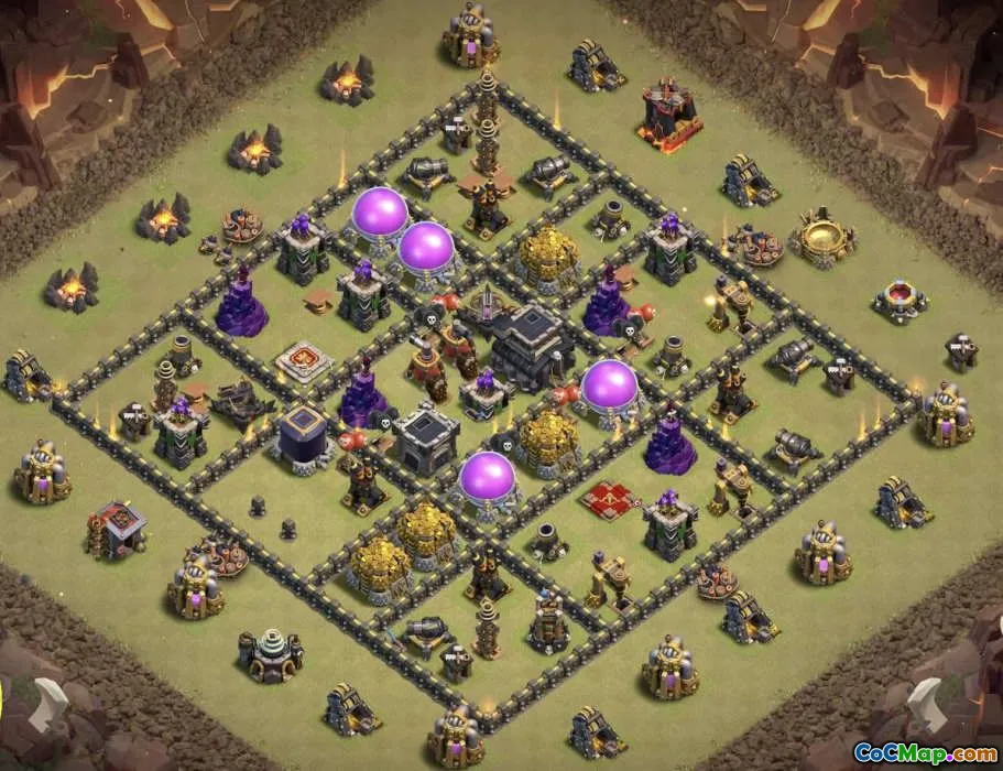 Discover effective Town Hall 9 base layouts for home, trophy, and war defenses. Copy links included for easy implementation in Clash of Clans.