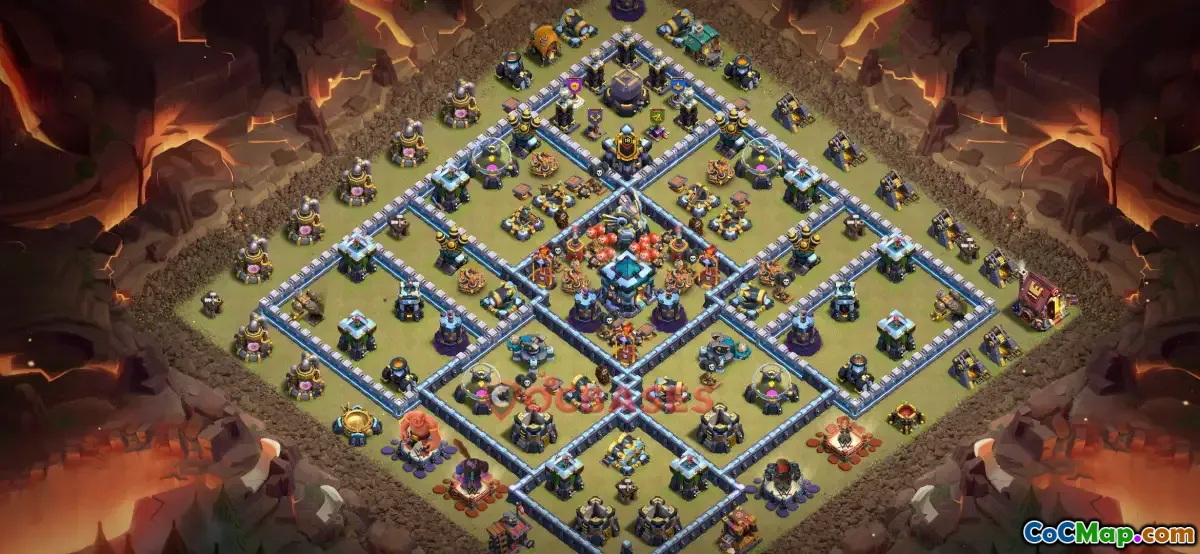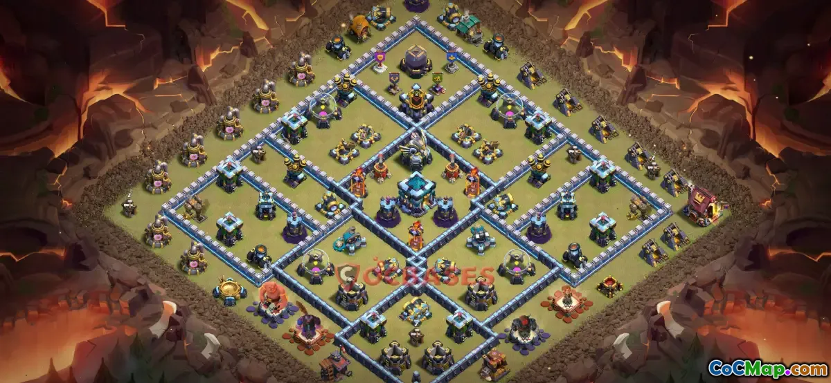 One of the essential aspects of a good Town Hall 13 war base is the placement of critical resources and defensive structures. Typically, the Town Hall itself is well-protected within the core of the base, often surrounded by a series of walls and damage-dealing structures. Clan members can copy the base layout by using the provided base link, making it easier to set up similar strategies during wars. These layouts often include traps and hidden teslas strategically placed to surprise unsuspecting attackers and disrupt their plans.
