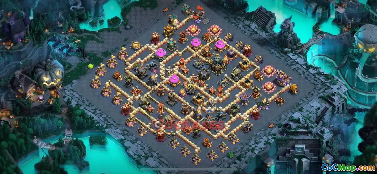 The Town Hall 17 hybrid base design in Clash of Clans is a strategic layout that combines elements suitable for both farming and attacking. This type of base is carefully crafted to protect the central Town Hall while also making it difficult for enemies to achieve high rewards in a raid. The hybrid base typically features well-protected resource storages and defenses arranged in a way that balances both defensive strength and resource safety.