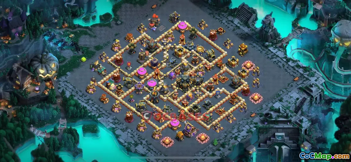 The Town Hall 17 hybrid base in Clash of Clans is designed to effectively defend against various types of attacks while maximizing resource protection. This base layout combines elements of both farming and defensive strategies, making it versatile for players who wish to safeguard their resources while also maintaining a solid defense against attackers. The hybrid base is typically structured with well-planned placements of walls, traps, and defensive buildings to create a challenging environment for enemies trying to penetrate the core where the Town Hall is situated.