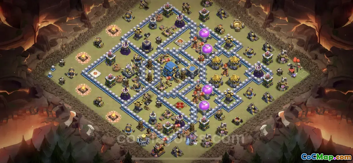 One of the key features of this anti 3-star war base is its balanced layout, which incorporates both defensive structures and traps effectively. This prevents enemies from easily exploiting weaknesses in the design, forcing them to employ more complex strategies to achieve any stars at all. This makes it an ideal base for players participating in competitive Clan War Leagues, where every defense counts toward overall clan performance and trophies.