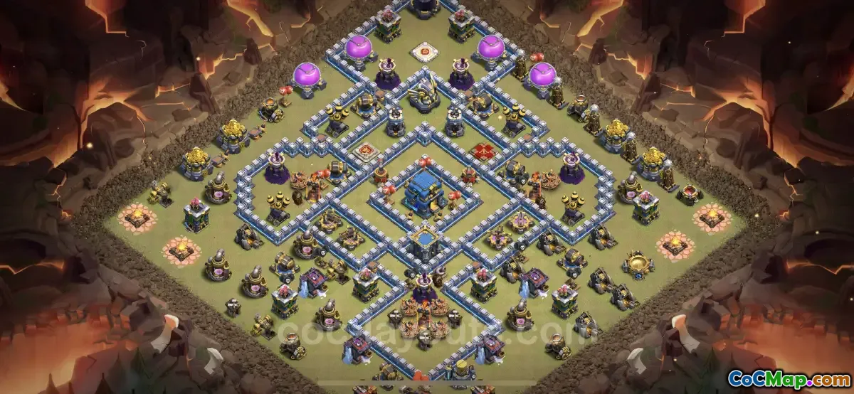 The Town Hall 12 (TH12) base in Clash of Clans is designed with a focus on strong defense, making it ideal for Clan Wars and competitive play. Utilizing strategic placements, this base is able to withstand various attack strategies and protect resources effectively. The layout is often labeled as an "anti-everything" base, meaning it has been optimized to defend against a wide range of enemy units and tactics, providing a solid foundation for any Clan War League (CWL) participant.