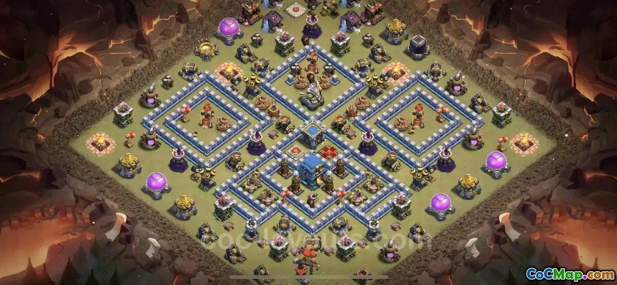 This top War TH12 base comes with a link for players to easily copy the layout, making it convenient for anyone looking to enhance their defensive capabilities in Clash of Clans. The design is crafted to create a challenging environment for attackers by spreading out key buildings and integrating defenses in a manner that minimizes the risk of losing stars. By utilizing a variety of defenses together, the base ensures that attackers face significant challenges regardless of the approach they choose.