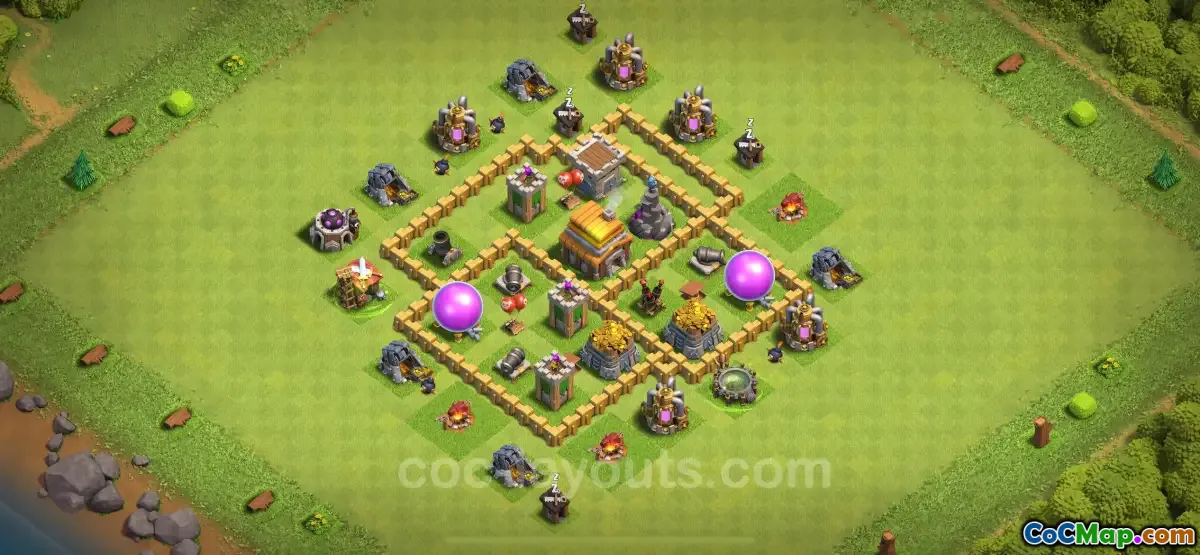 TH5-basedesignet i Clash of Clans er strukturert for å beskytte ressurser samtidig som det forhindrer trestjerners angrep. Denne typen layout er avgjørende for spillere som ønsker å maksimere jordbrukseffektiviteten på rådhusnivå 5. Den strategiske plasseringen av defensive strukturer sikrer at motstandere finner det vanskelig å få alle tre stjernene under angrepene sine, noe som er gunstig for å opprettholde et sterkt ressurslager .