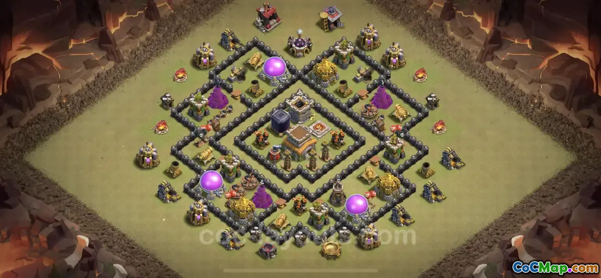 An essential goal for a TH8 war base is to be anti-2 stars. This refers to the design strategy aimed at preventing opponents from achieving a two-star victory during clan wars. A well-configured base will force attackers to struggle in either taking down important defensive structures or in the distribution of their attacking troops, ultimately leading them to fail in securing two stars.