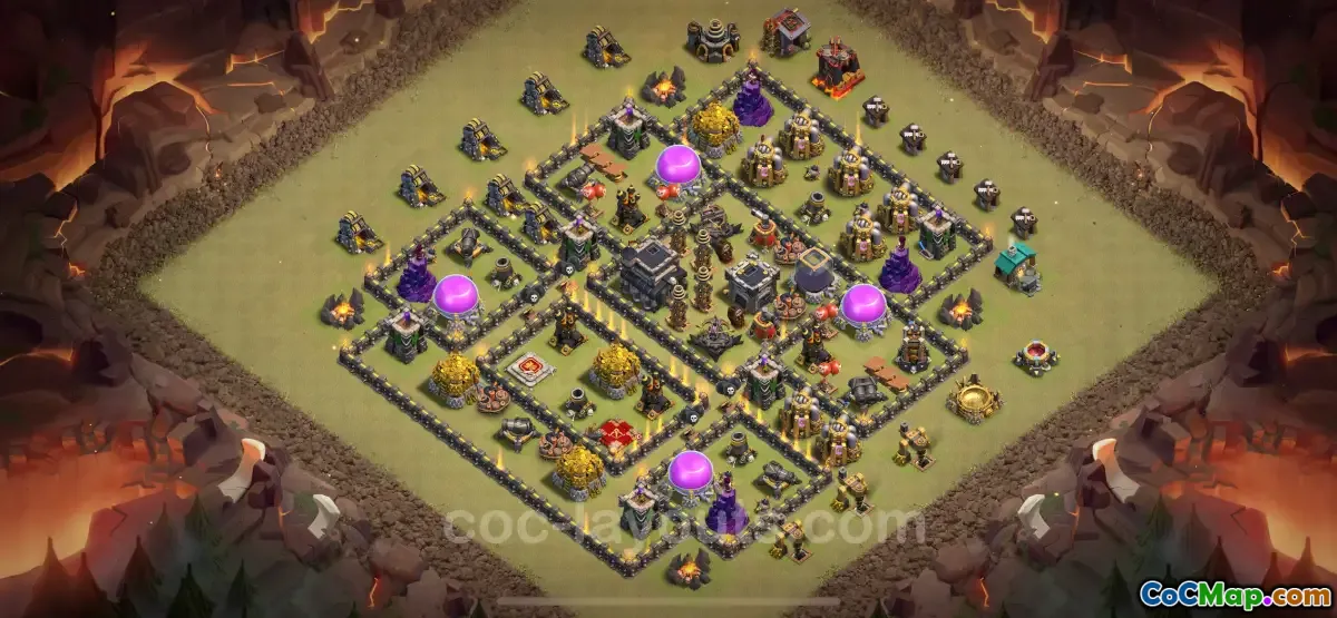Denne grunnlayouten er kategorisert som en "Anti Everything"-design, noe som betyr at den er bygget for å tåle et bredt spekter av offensive strategier brukt av angripere. Basen plasserer strategisk viktige defensive strukturer, som kanoner og bueskyttertårn, for å målrette innkommende enheter effektivt. I tillegg minimerer oppsettet risikoen for at angripere lett kan nå rådhuset, og sikrer at spillere kan beholde stjerner under kamper, spesielt under Clan War Leagues (CWL).