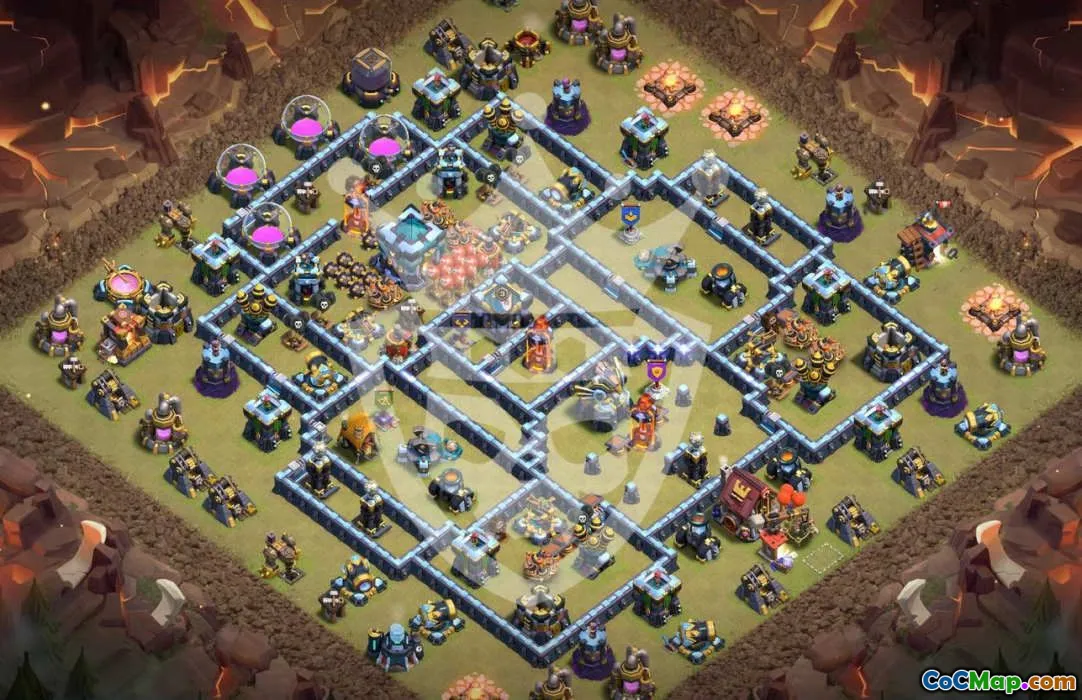Looking for a powerful Town Hall 13 base layout? This design offers optimal defense for your home village, trophy push, and war strategy. The layout balances protection for key structures and resource storage while minimizing vulnerabilities against attackers.