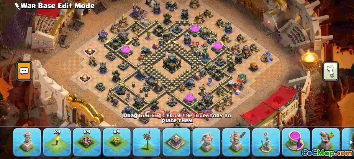 This Town Hall 17 base layout with ID kwz7p is meticulously designed to counter common attack strategies and maximize defense during clan wars. Its strong anti-3 star defenses ensure your base withstands multiple attack strategies, including well-coordinated raids. The design incorporates optimized trap placements, layered walls, and centralized key defenses to create a resilient structure that is difficult for opponents to breakeasily.