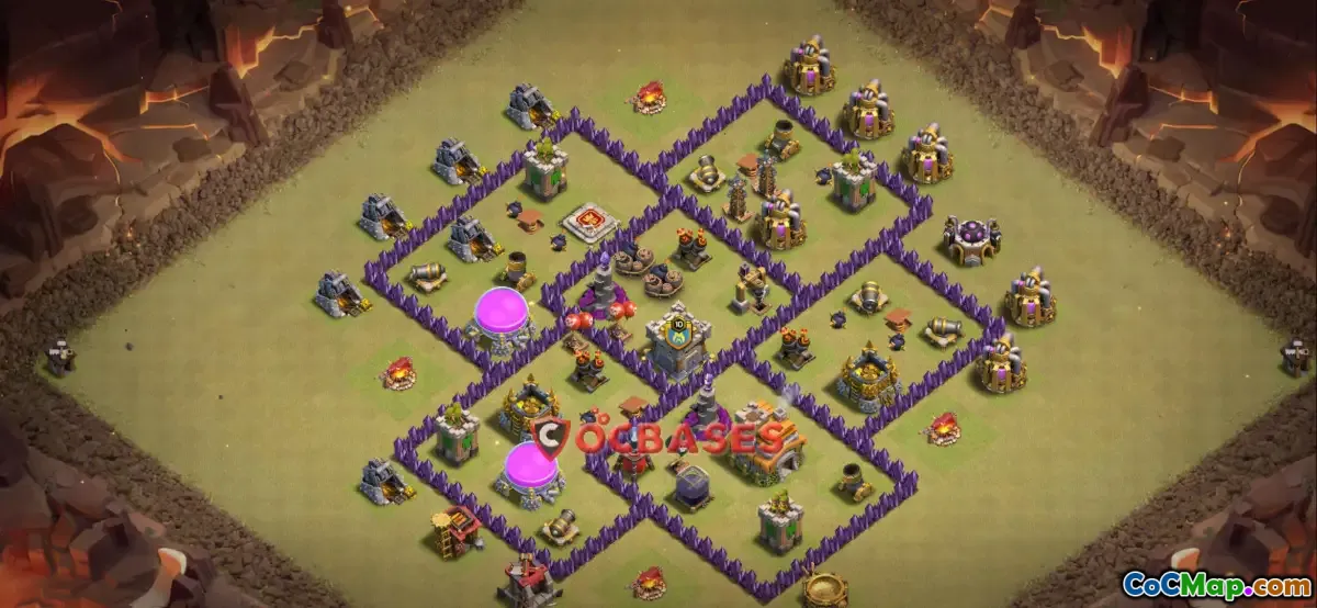Another critical aspect of this Town Hall 7 war base is its focus on anti-air defenses. At this level, players often face attacks that include balloons, dragons, or other aerial units. By placing air defenses effectively, players can mitigate the damage dealt by these units, protecting both the Town Hall and crucial buildings from being easily destroyed. Prioritizing anti-air capabilities ensures that attackers will have a harder time achieving a two-star victory.