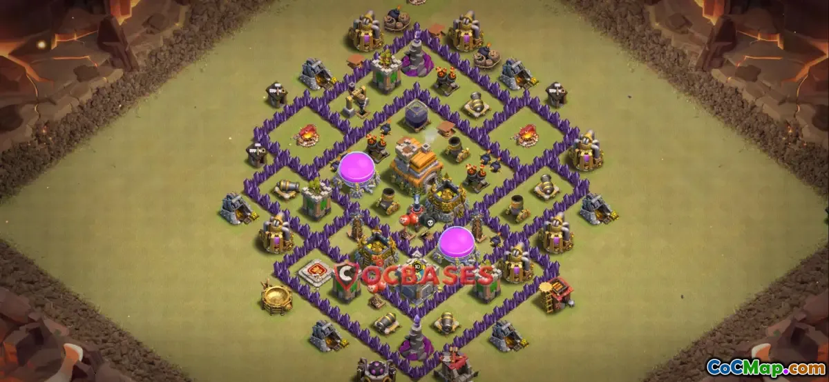 Discover the ultimate Town Hall 7 war base for Clash of Clans! Featuring a symmetric design, trophy protection, and easy copy base link for quick setup.
