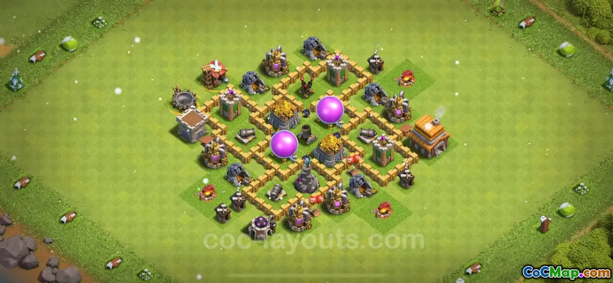 Base TH5-designet for oppdrett i Clash of Clans (COC) 2024 fokuserer på å maksimere ressursbeskyttelsen samtidig som effektiviteten opprettholdes for oppdrettsformål. På Town Hall Level 5 er spillere ute etter å optimalisere layouten for å beskytte verdifulle ressurser som gull og eliksir fra fiendtlige angrep. En godt strukturert base kan forbedre levetiden til en spillers ressurser og den generelle spillopplevelsen betydelig.