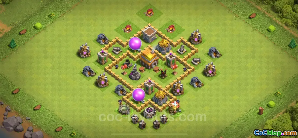 Base TH5-designet for Clash of Clans fokuserer på å lage et godt avrundet oppsett som tjener flere formål, spesielt med vekt på ressursforsvar og anti-trestjernes taktikk. Denne grunndesignen er beregnet på rådhusnivå 5-spillere som ønsker å effektivt beskytte ressursene sine samtidig som de viser seg motstandsdyktige mot ulike angrepsstrategier. Oppsettet inneholder defensive strukturer og strategiske plasseringer for å minimere virkningen av fiendtlige tropper og maksimere beskyttelsen av verdifullt bytte. Målet er å skape en robust defensiv posisjon som er vanskelig å overvinne, og dermed bevare ressursene under oppdrettsoperasjoner.