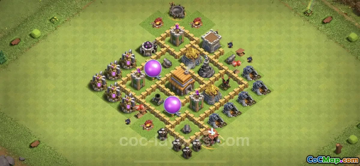Rådhusnivå 5-basen er designet spesielt for Clash of Clans-spillere som ønsker å implementere en hybridstrategi som kombinerer effektivt ressursforsvar og anti-trestjernes evner. I denne utformingen er basisstrukturen nøye organisert for å beskytte verdifulle ressurser samtidig som de sikrer at angripere synes det er utfordrende å oppnå en tre-stjerners seier. Denne utformingen er spesielt gunstig for spillere som ønsker å opprettholde ressursene sine mens de fortsatt deltar i konkurransekamper.