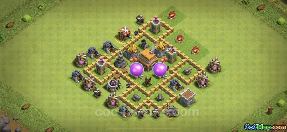 I tillegg til å beskytte ressursene, tar oppsettet også hensyn til plasseringen av defensive strukturer. På Town Hall Level 5 har spillere vanligvis tilgang til en rekke forsvarsbygninger, som kanoner og bueskyttertårn. Ved å strategisk lokalisere disse forsvarene, kan basen dekke kritiske områder og skape en buffersone som gjør det utfordrende for motstandere å trenge dypt inn i oppsettet.