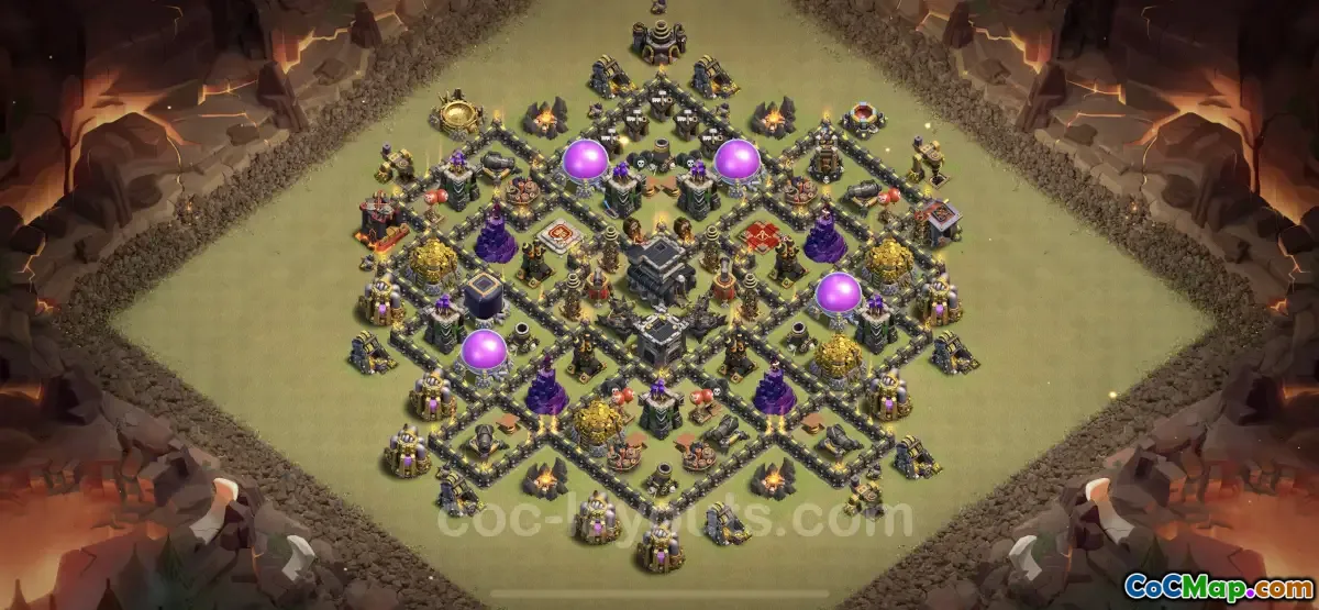 To further enhance the defensive capabilities, the best TH9 bases include a mix of high hitpoint structures, along with defending heroes strategically positioned to counterattack enemy troops. The layout ensures that heroes are not easily lured away from their spots, enabling them to protect the core of the base. This is essential for retaining the integrity of the base and preventing attackers from securing the prized 2 stars.