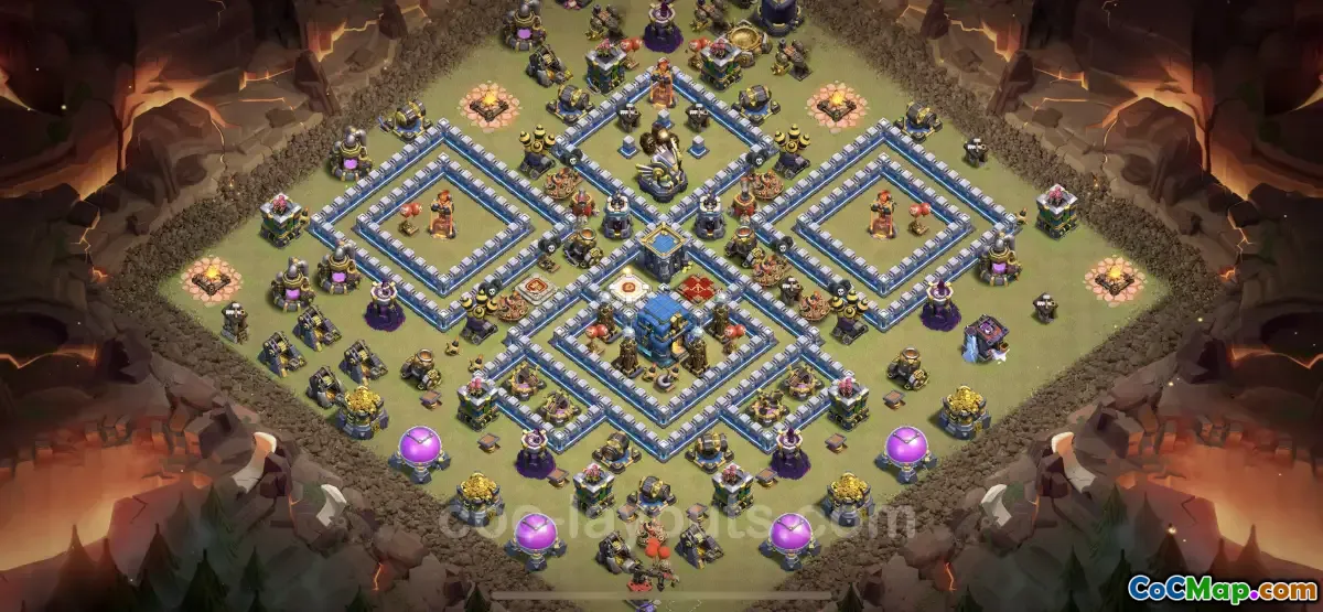 One of the key features of this anti-three stars war base is its ability to thwart significant attack strategies that are commonly employed in Clan Wars. The layout typically includes well-placed defensive structures, traps, and walls that work in harmony to slow down enemy troops. By integrating effective defensive units and traps, this base ensures that attackers have to work harder for every star, thus increasing the chances of a two-star or less result against it.