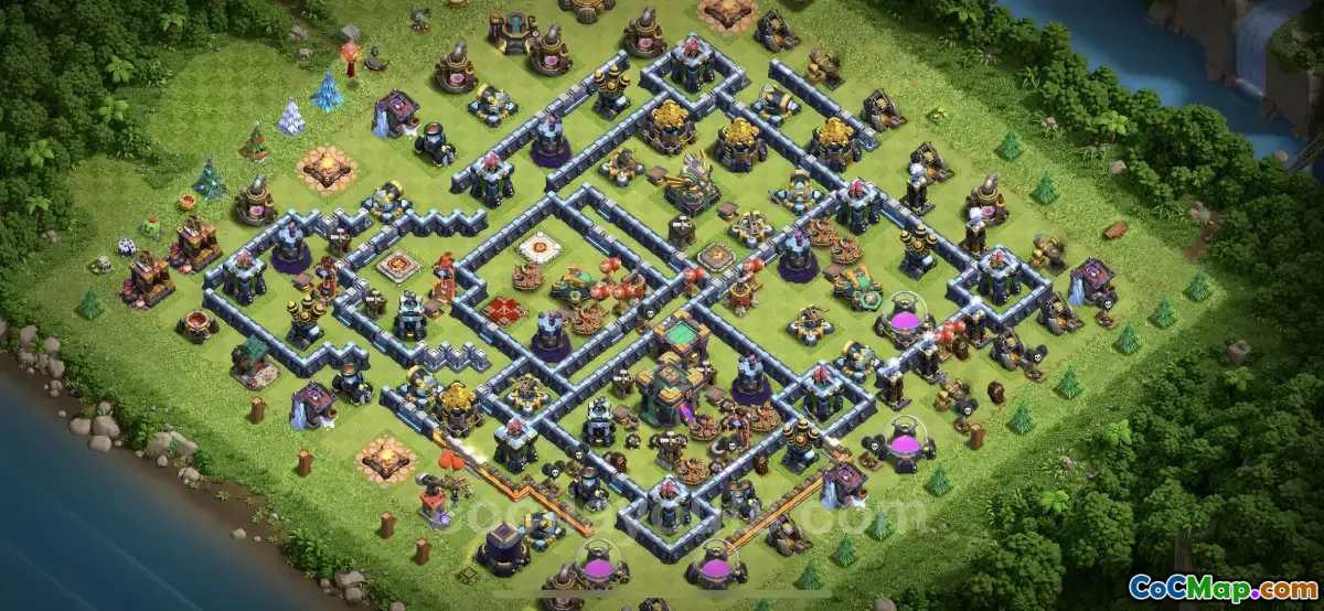 Furthermore, the inclusion of link strategies in the design helps to provide additional protection against potential breaches in the base. This approach not only thwarts direct assaults but also ensures that players can maintain a strong defensive stance. Overall, this Town Hall 14 base is an ideal choice for players looking to enhance their defensive game against air attacks in Clash of Clans.