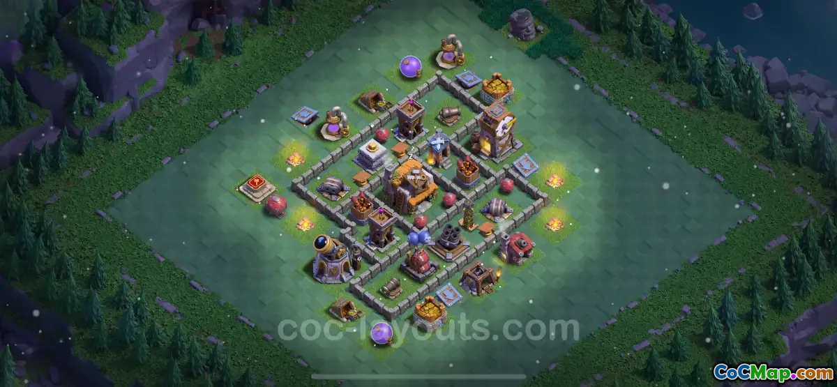 I tillegg inkluderer denne grunndesignen smarte plasseringer av forsvarsbygninger som bueskyttertårn, kanoner og skjulte feller. Disse plasseringene er avgjørende for å gjøre ytterligere skade på de angripende styrkene, samtidig som de gir dekning til andre viktige punkter på basen. For spillere på nivå 5 lar denne designen dem utnytte både offensive evner og sterkt forsvar, noe som gjør dem til en utfordrende motstander i spillet.