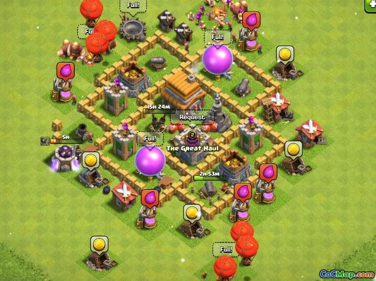 En god oppdrettsbaseoppsett for rådhus 5 fokuserer på å beskytte ressurser, samtidig som det kan avverge angrep fra andre spillere. Spillerne deler ofte kart eller oppsett som maksimerer dekningen av forsvar, og sikrer at lagringene som inneholder gull og eliksir er godt beskyttet. Den ideelle kartdesignen inkluderer også strategisk plasserte feller og forsvar som kanoner og Archer Towers for å forbedre landsbyens defensive styrke.