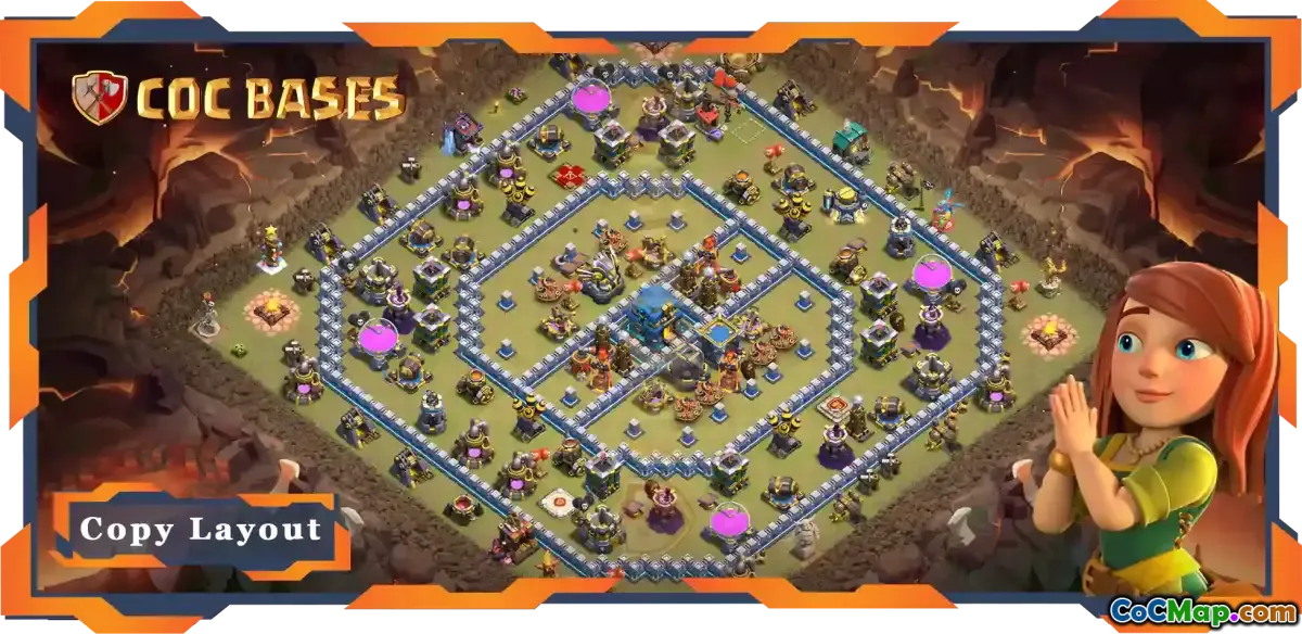 An important aspect of the design is its anti-everything layout. This means the base is crafted to resist different kinds of troops and strategies that attackers might use. Various defensive buildings are placed strategically to cover blind spots and maximize coverage against air and ground attacks alike. As a result, the base is versatile and can thwart a wide range of offensive strategies, ensuring that players have peace of mind when they are away from the game or when participating in wars.