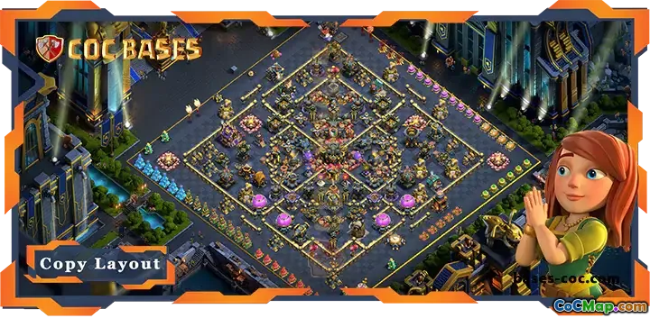 Ideal for trophy hunters, this hybrid base layout ensures a high win rate against diverse attack strategies. The design emphasizes centralized defenses and well-placed traps to frustrate enemies, making it perfect for maintaining or increasing your trophy count. Use the provided link to quickly deploy this effective TH17 defense setup and improve your Clash of Clans gameplay.