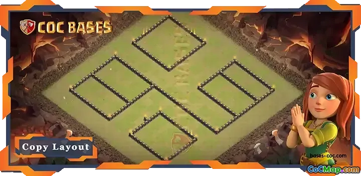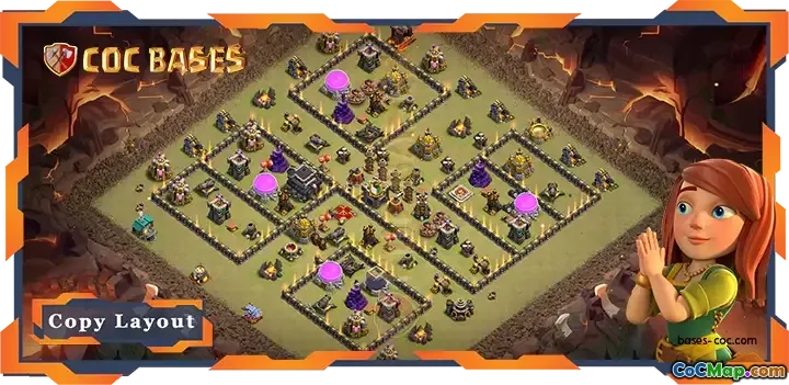 Denne krigsbasen er designet spesielt for Town Hall Level 9, med fokus på forsvarsstrategier for ulike engasjementer som kriger, Clan War Leagues (CWL) og beskyttelse mot luftangrep, spesielt fra drager. Oppsettet prioriterer sikkerheten til rådhuset ved å plassere det i det sentrale området av basen, noe som er avgjørende for å minimere risikoen for at fiendtlige tropper lykkes med å ødelegge det.