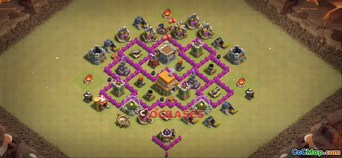 The Town Hall 6 war base in Clash of Clans is designed to enhance defensive capabilities during clan wars. At this level, players are able to fortify their structures to protect trophies and resources. The layout is carefully crafted to deter opponents, making it challenging for them to secure a three-star victory. Key elements of the design include strategic placement of defenses and traps to maximize their effectiveness against attacking troops.