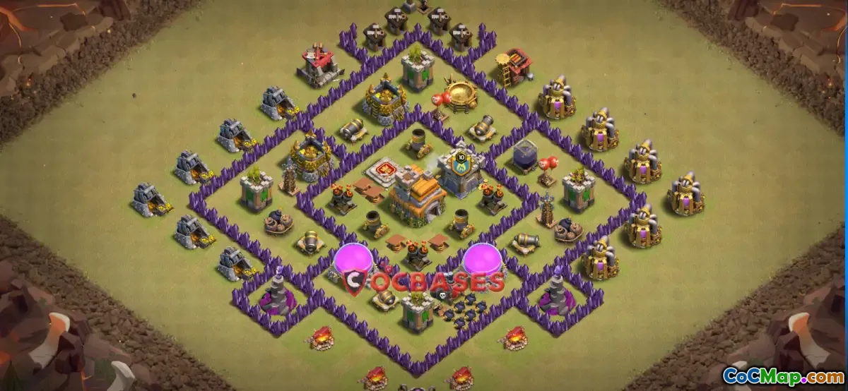 Additionally, the war base is designed to be anti-ground, which is a significant consideration in Town Hall 7. Ground attacks are common at this level, as many players develop their layout and troops around ground units. By focusing on anti-ground defenses, such as placing powerful towers and walls in strategic locations, the base can capitalize on the weaknesses of ground-based armies. Overall, a Town Hall 7 war base that incorporates these elements can improve a player's defensive capabilities in clan wars.