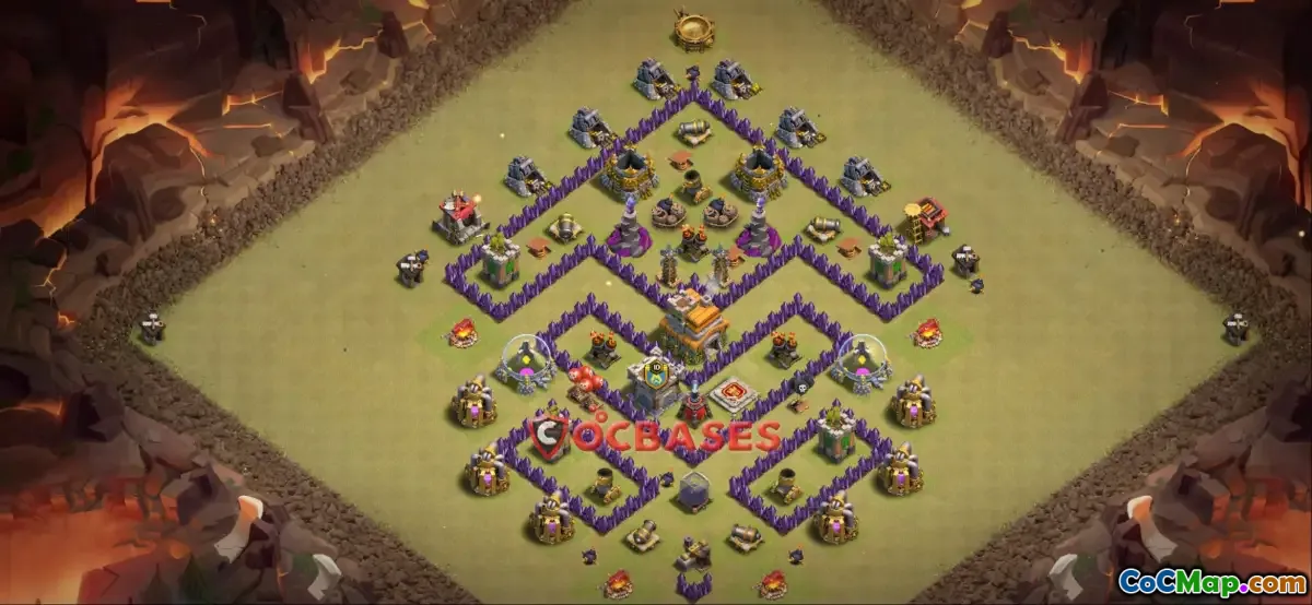 The Town Hall 7 war base in Clash of Clans is specifically designed to provide a strategic advantage during battles. This base layout is crafted to protect valuable resources and the Town Hall itself, making it difficult for opponents to achieve their objectives. The placement of defensive structures, traps, and walls is carefully calculated to create a challenging environment for attackers, thereby increasing the chances of a successful defense during clan wars.