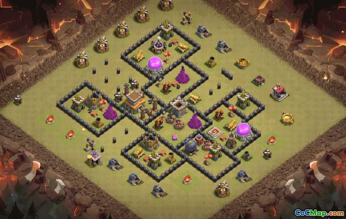 Discover expertly designed Town Hall 8 base layouts for Clash of Clans, including home villages, trophy bases, and war bases. These layouts are optimized to protect resources, defend against attacks, and optimize clan wars. Each design focuses on strategic placement of walls, defenses, and traps to maximize your defense potential.