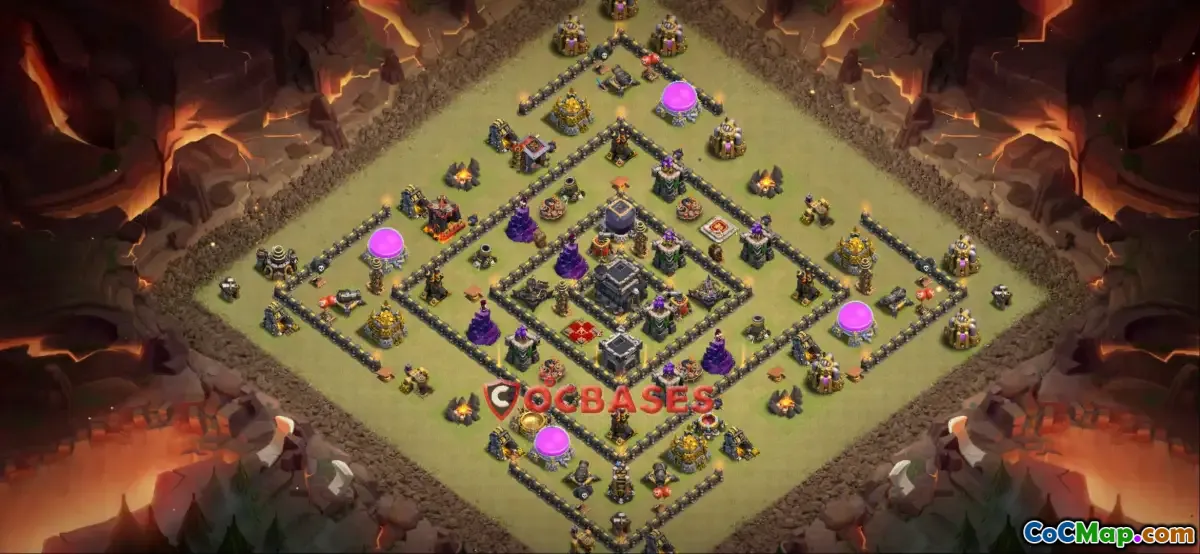 A Town Hall 9 war base in Clash of Clans is specifically designed to enhance a player's defensive capabilities during clan wars. At this level, players have access to various defensive structures, traps, and upgrades that can be strategically placed to fend off enemy attacks effectively. The goal of a well-designed war base is to protect the Town Hall and achieve a high percentage of defense by minimizing the damage inflicted by attacking players. The layout usually focuses on centralizing the Town Hall and critical defenses while creating compartments to slow down enemy troops.