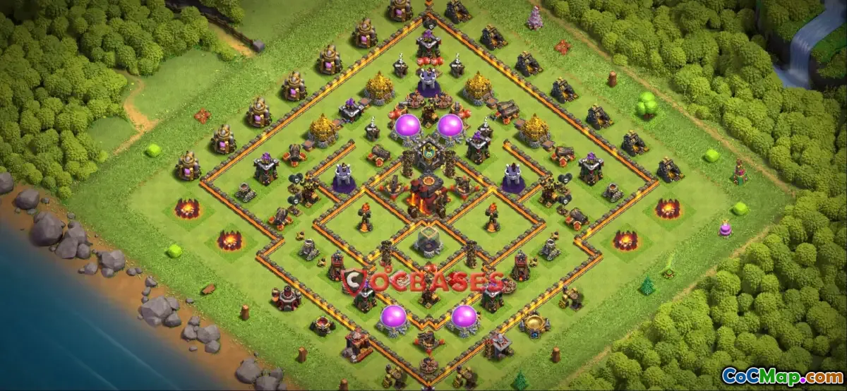 The farming base at Town Hall 10 typically features storages placed in safe locations, often toward the center of the layout, while the bulk of defensive structures is arranged in a way that covers these storages effectively. Additionally, players often use walls to create compartments that can slow down enemy troops, ultimately preventing them from reaching the core resources. Moreover, this base type focuses on the efficient use of defenses like cannons, archer towers, and air defenses to fend off a variety of attack styles. Players can also use traps such as bombs or spring traps to surprise attackers and further enhance their base's defensive capabilities.
