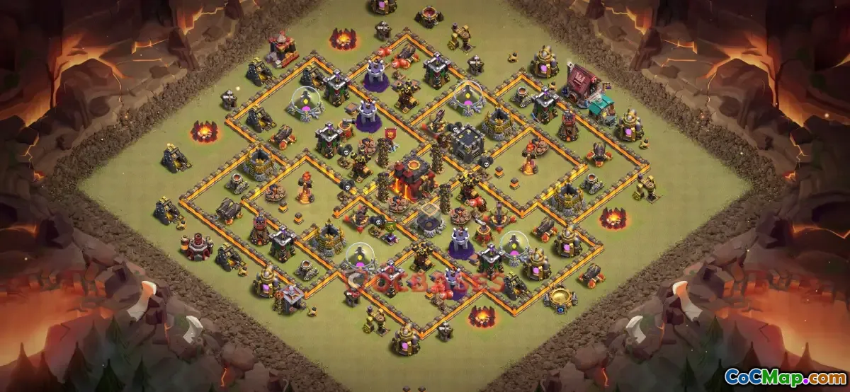 The Town Hall 10 war base in Clash of Clans is a strategic layout designed to defend against enemy attacks during clan wars. It typically features a balanced distribution of defenses such as cannons, archer towers, and air defenses, all positioned to cover the core and periphery of the base. Proper placement of walls and traps enhances the base’s ability to slow down or divert attacking troops, making it more difficult for opponents to achieve a three-star victory.