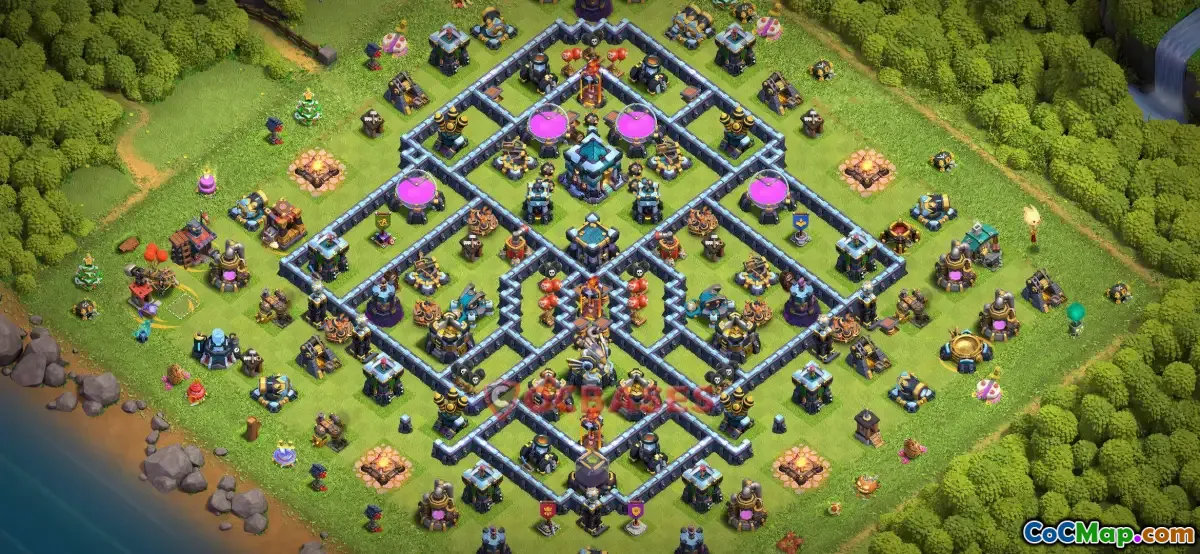 The Town Hall 13 farming base in Clash of Clans is designed to help players efficiently gather resources while protecting their loot from attacks by other players. These bases are strategically built to create strong defenses around resource storages, making it difficult for opponents to raid and steal resources. They often incorporate well-placed walls, defensive structures, and traps to delay and damage attacking troops, increasing the chances of defending successfully. The layout aims to divert enemy attacks away from key resource areas, encouraging attackers to waste more time and resources while trying to break through the defenses.
