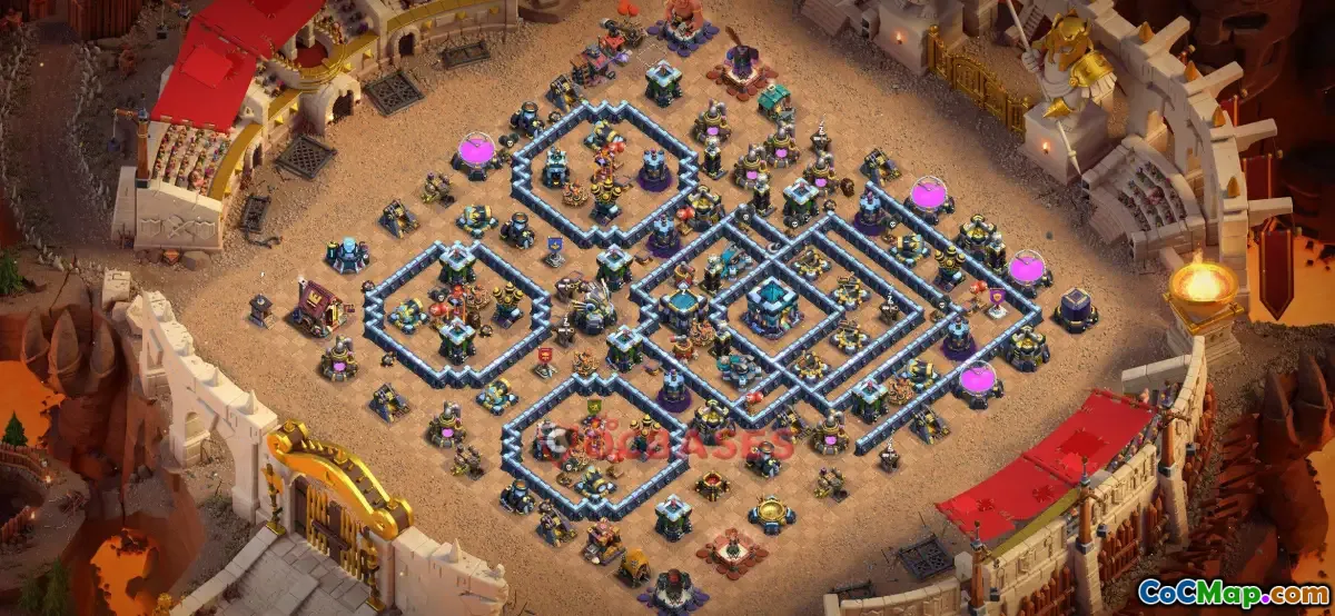 In Clash of Clans, participating in wars requires players to upgrade their Town Hall and defenses to match or outmatch their opponents. For Town Hall 13, the base layout often emphasizes the protection of the Eagle Artillery, Inferno Towers, and the Clan Castle. Properly positioning these defenses along with well-placed traps and walls can significantly improve the war defense performance of the base, helping to prevent early losses and secure victory for the clan.