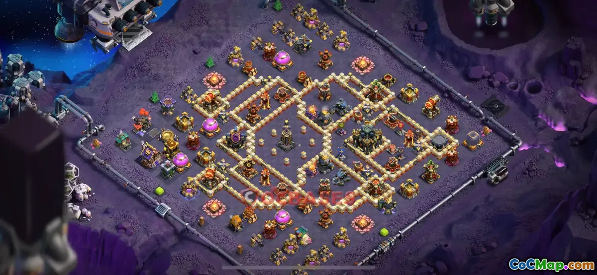 The Town Hall 17 hybrid base in Clash of Clans is designed to effectively protect resources and defend against various attack strategies. It combines elements of farming and war bases, making it versatile for different gameplay purposes. This type of base layout typically features well-placed defenses, traps, and walls to maximize protection and create a challenging environment for attackers.