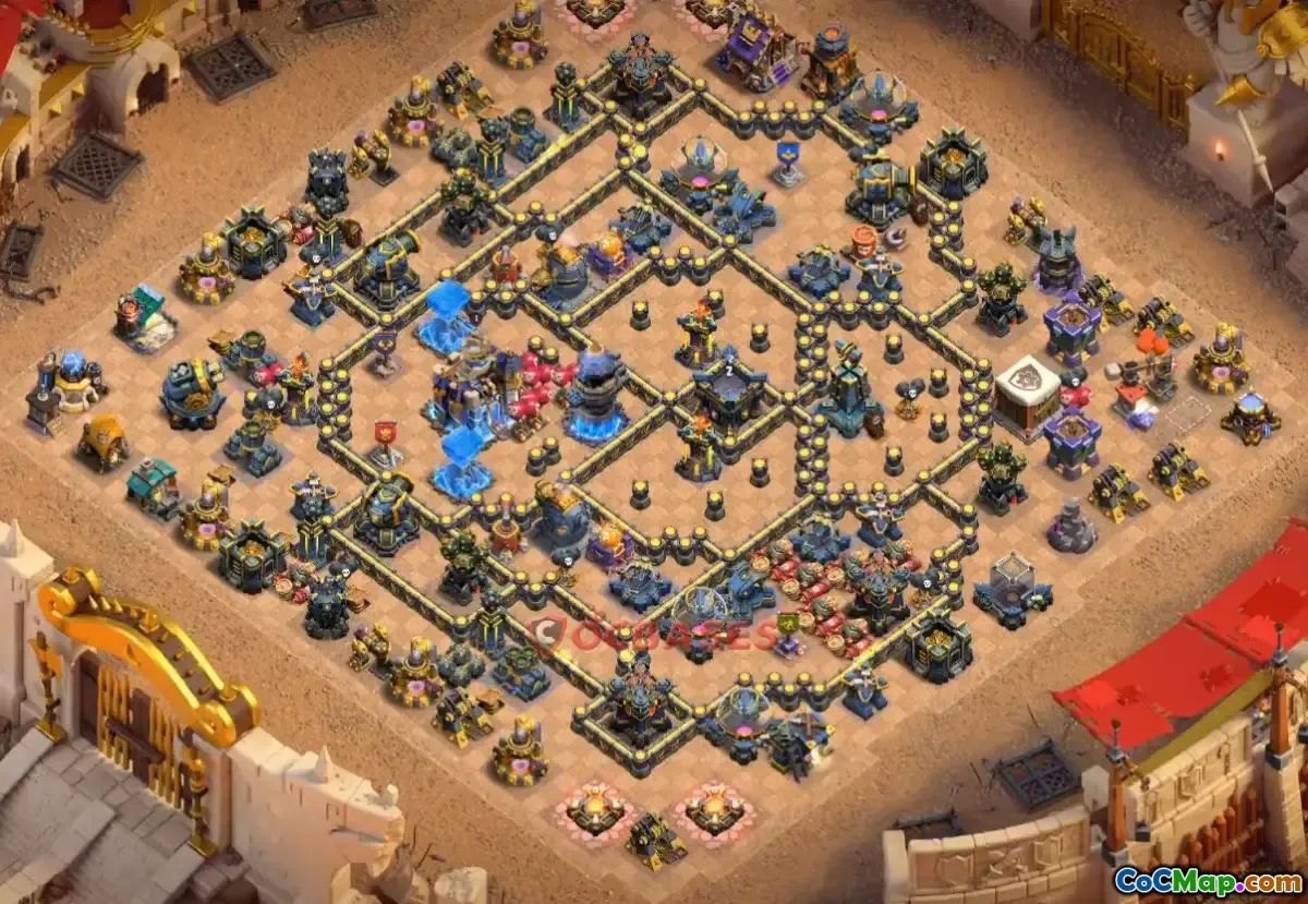 Protect your Town Hall 18 with this optimized war base layout designed to defend against multiple attack strategies. The design strategically places defenses, traps, and heroes to maximize damage and distraction, making it difficult for opponents to secure three-star victories.
