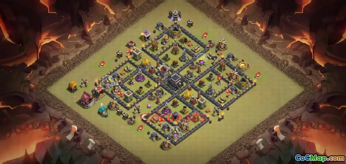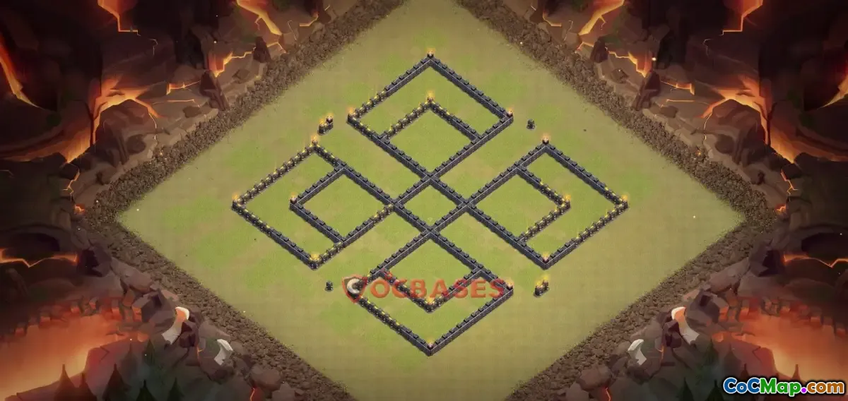 Players seeking to copy this base can easily locate the link to the specific layout, allowing them to implement the same defensive setup in their own game. The base is optimized to defend against common attack strategies used by Town Hall 9 attackers, such as GoWiPe, Balloonion, or LavaLoon, by positioning traps, walls, and defensive structures effectively. This setup enhances the durability of the base during war matches, increasing the chance of winning or achieving a high percentage of destruction.
