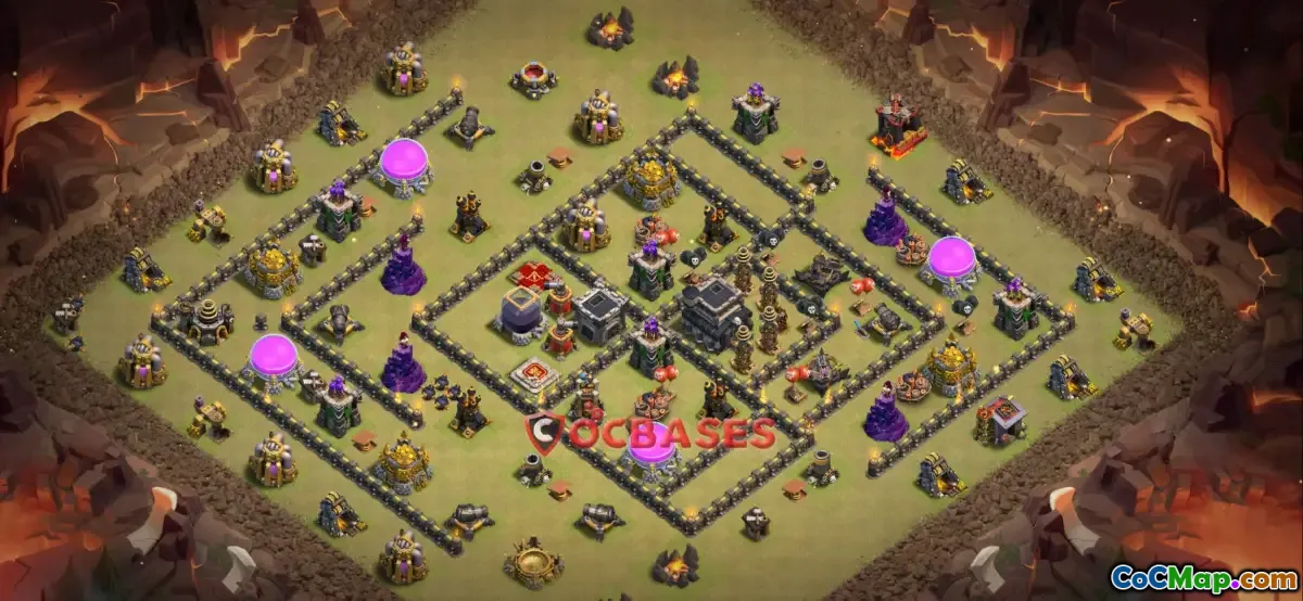In Clash of Clans, players at Town Hall 9 are often searching for effective war bases to defend against enemy attacks. A well-designed war base can significantly enhance a player's chances of winning clan wars by protecting key resources and the Town Hall itself. The design of these bases typically emphasizes the prevention of easy access to the Town Hall and important defensive structures.