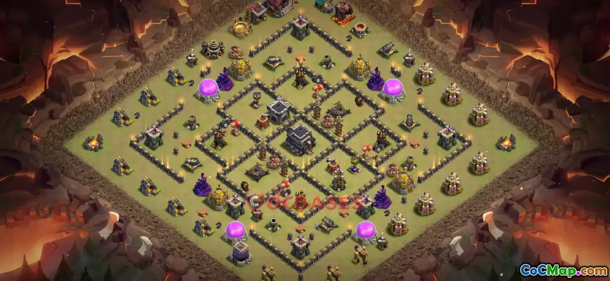 The Town Hall 9 war base in Clash of Clans is a strategic layout designed to defend against attacks during clan wars. At this level, players have access to many powerful defenses and traps, making it essential to create a well-balanced base that can withstand enemy assaults. A good Town Hall 9 war base typically focuses on protecting key resources and the Town Hall itself, often placing the Town Hall near the center surrounded by strong defenses like Archer Towers, Cannons, Wizard Towers, and X-Bows.