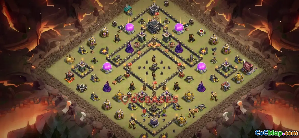 Discover the best Town Hall 9 war base design for Clash of Clans. Boost your war success! Copy the base link and upgrade your strategy today.