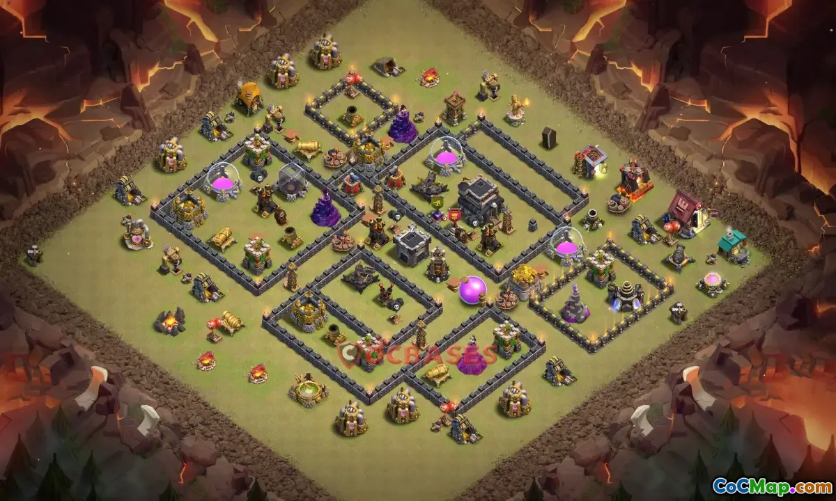 Explore the best Town Hall 9 war base with compartmentalized design for Clash of Clans. Build a strong defense and win wars! Copy base link now.