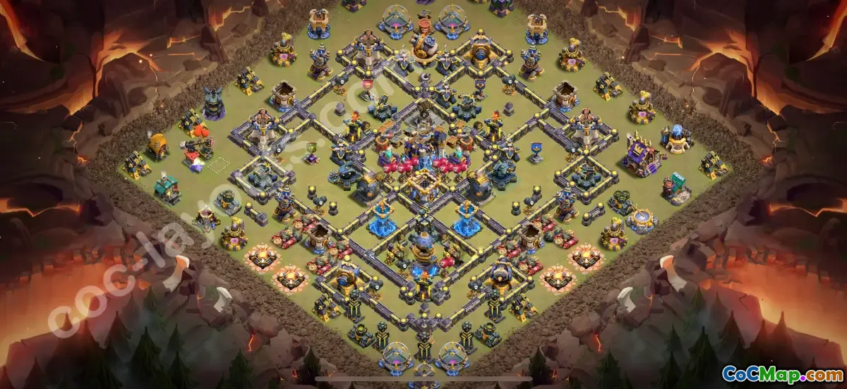 This highly effective Anti 2 Stars TH18 war base is strategically designed to maximize defenses against common attack strategies, making it an ideal choice for Clan War League (CWL) battles in 2026. The layout incorporates well-placed traps, centralized Town Hall, and multiple layer defenses to distract and weaken opponents’ troops, ensuring minimal damage and preventing full 2-star destruction.