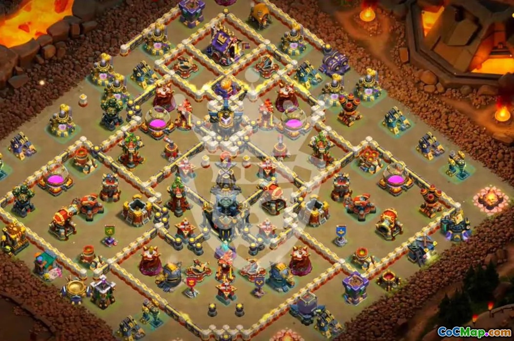 Explore this expertly designed Town Hall 17 base layout for Clash of Clans, perfect for defending your resources and trophies. This layout is optimized for both home village protection and strategic war defense, making it ideal for players aiming for a balanced approach.
