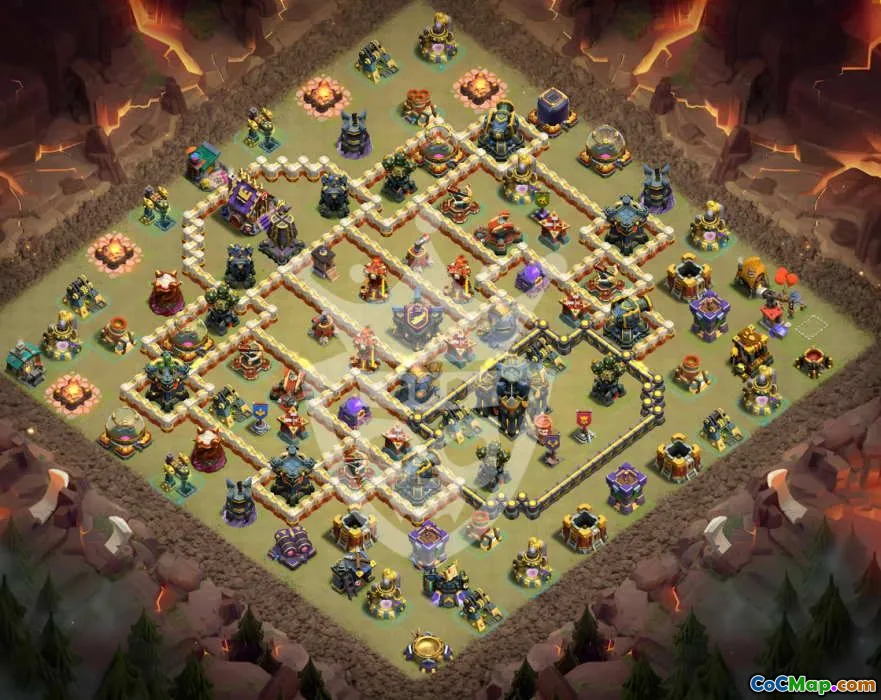 Discover an effective Town Hall 17 base layout perfectly designed to protect your resources and defenses. This layout offers a balanced approach for home village protection, incorporating strong walls, strategic trap placements, and well-positioned Clan Castle for optimal defense against attackers. It's ideal for both trophy pushing and resource safeguarding, ensuring your village remains resilient during intense battles.