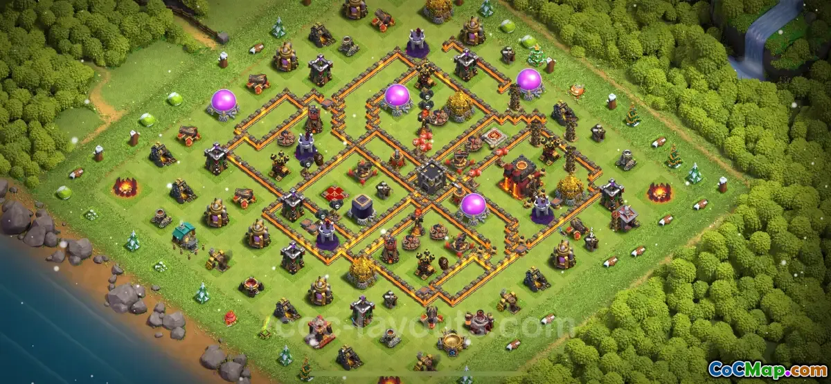 One effective strategy for TH10 base designs is to create layouts that are specifically optimized against Golem and P.E.K.K.A attacks. This entails placing defensive structures in strategic locations to funnel attackers into traps and slowing down their advances. The ideal base should have a design that spreads out resources and defensive buildings to minimize the impact of powerful troops that can easily destroy tightly clustered defenses.