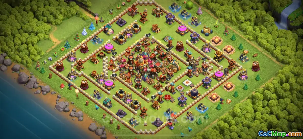 The Trophy Defense Base for Town Hall 16 in Clash of Clans is designed specifically for players aiming to collect trophies while competing in the Legend League. This configuration has been optimized for defense, allowing players to withstand attacks more effectively and protect their trophies. Players can utilize an easy-to-copy base layout that includes strategic placement of defenses, traps, and key structures to ensure maximum efficiency in defending against various types of attackers.